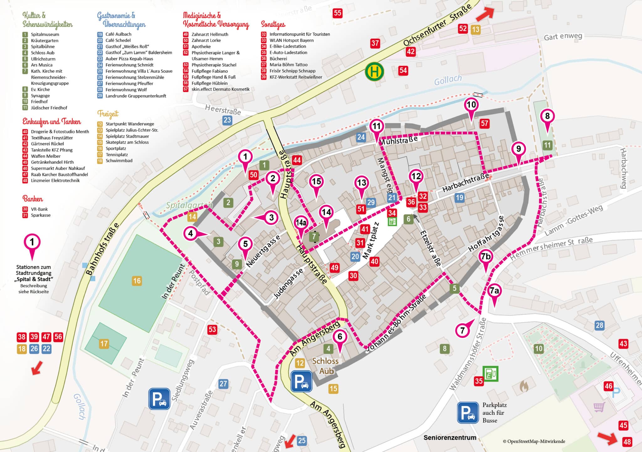 Am Eingang zur Bücherei Aub finden Sie den Stadtplan mit Stadtrundgang.